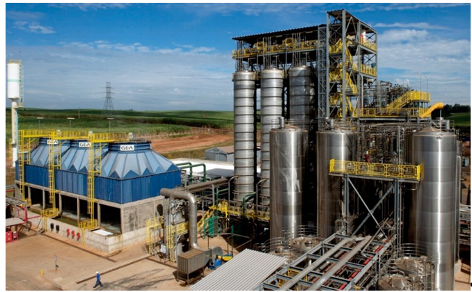 在巴西灿烂的蓝天下,一个个闪亮的巨大不锈钢罐拔地而起,在罐子之外,向远处延伸的是茂密的甘蔗绿地。